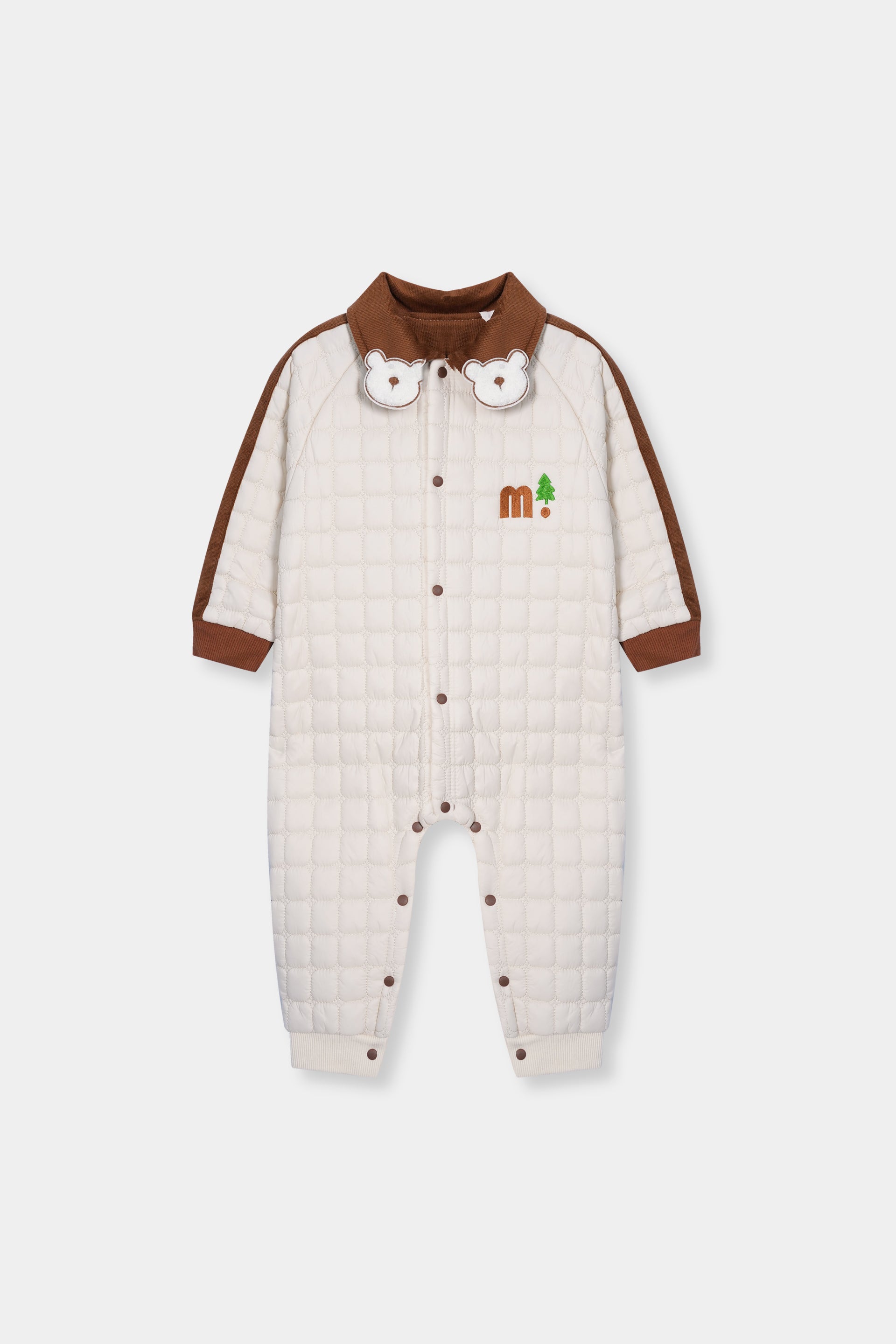 This puffer romper is perfect for any adventure, keeping your little one warm and stylish. The brown and white design adds a touch of whimsy to any outfit, while the puffer material provides both comfort and warmth. Bundle up and have some fun!