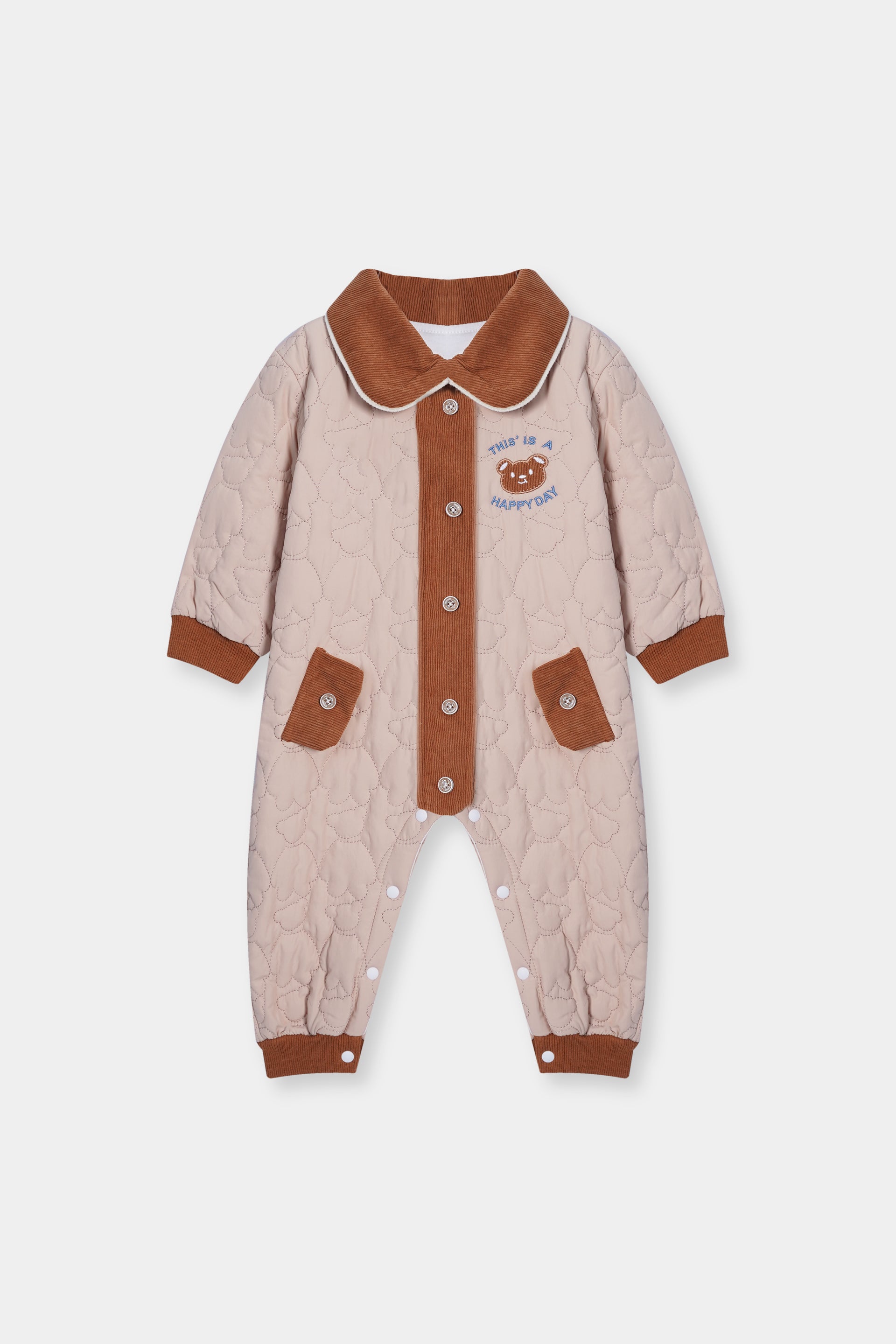 Puffer Jacket (Romper) with Corduroy Collar and Hem Dirty White & Brown