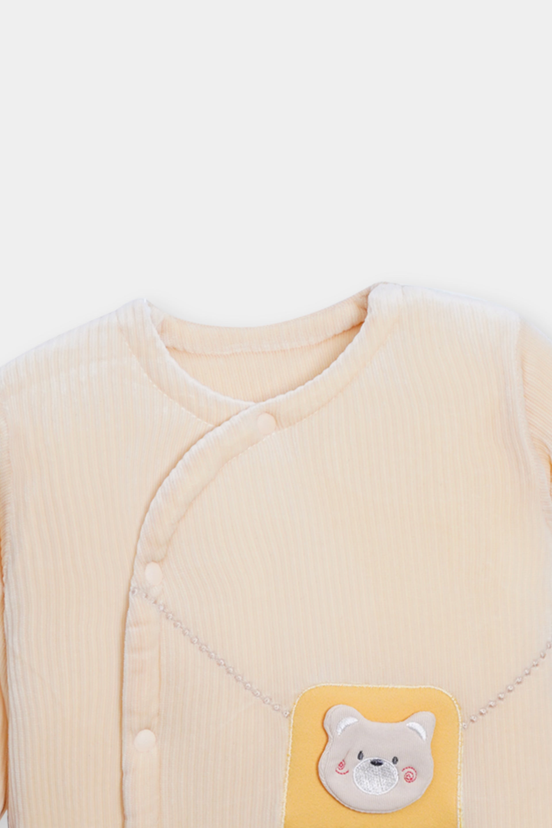 Remain fashionable and cozy in this beautiful ensemble. The peach (golden) color is so cute for babies in the winter.