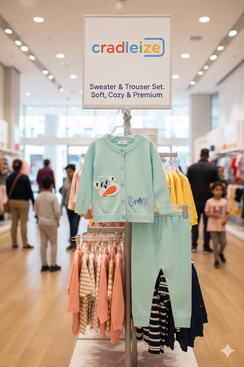 Enrich her winter wardrobe with our charming zinc green knit sweater and trouser set.