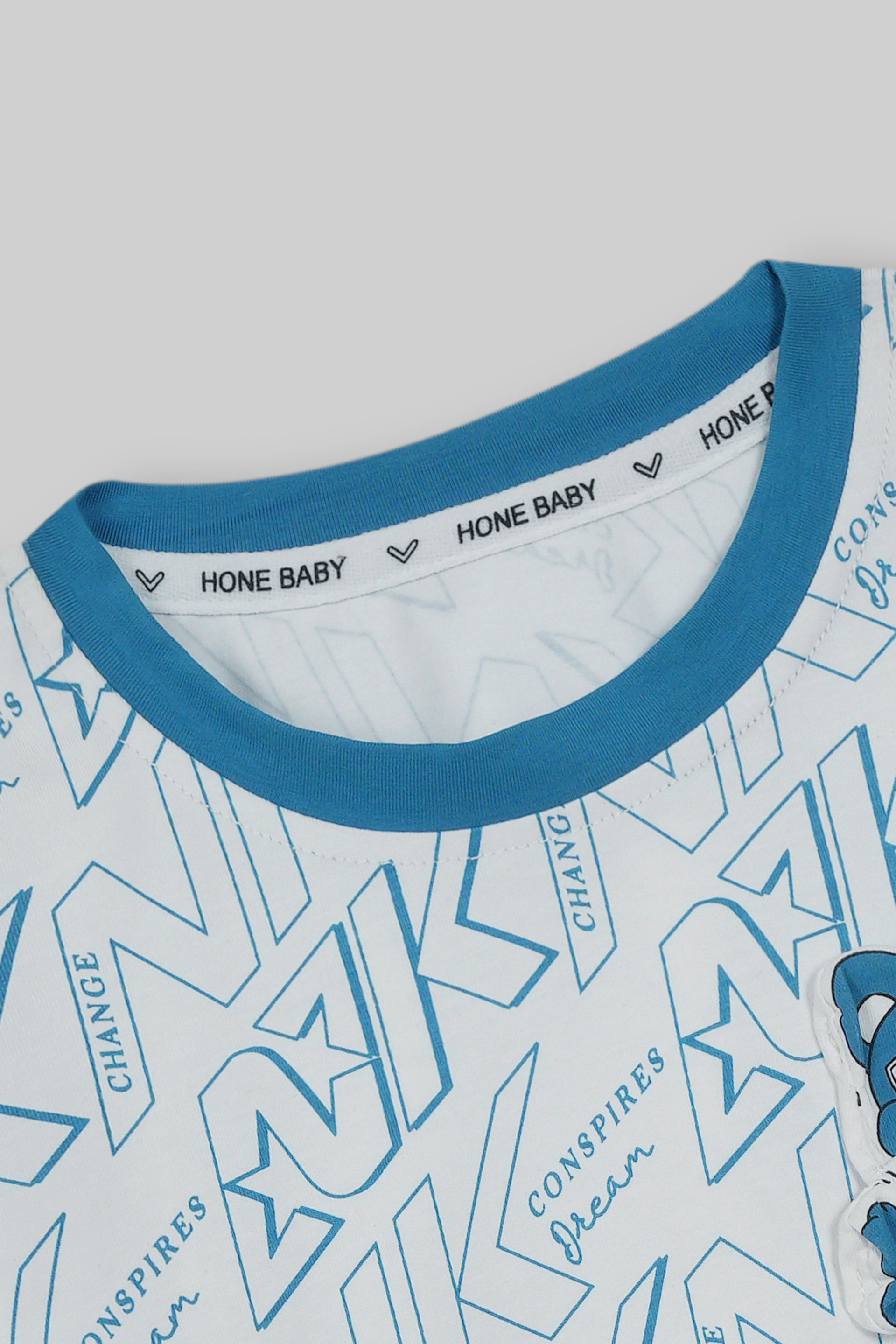 WHITE SLEEVE GRAPHIC TEE WITH COTTON SHORTS
