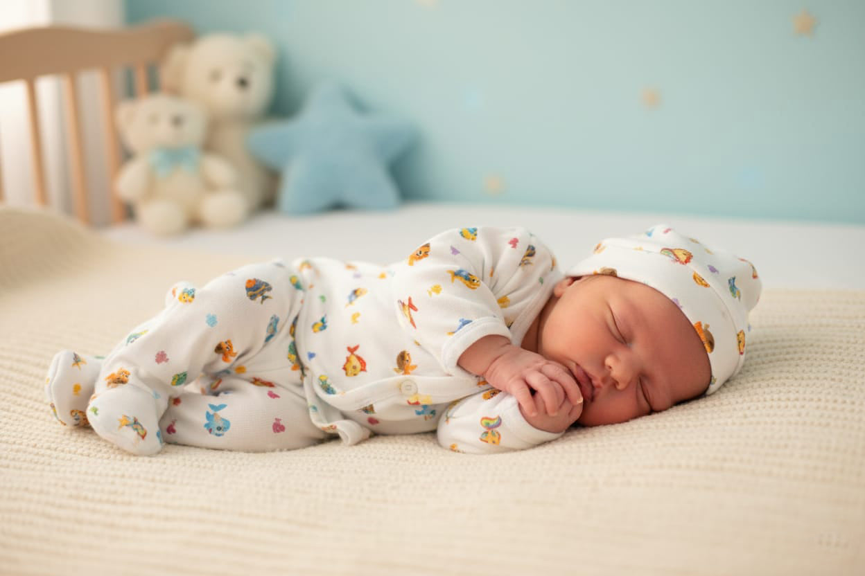 Imported gift set designed for newborns, comprising a starter pack of five items: trousers, a romper, a button-down shirt, a cap, and a bib. This lovely unisex set features charming cartoon characters and is exceptionally beneficial for newborns to stay warm during the winter months.
