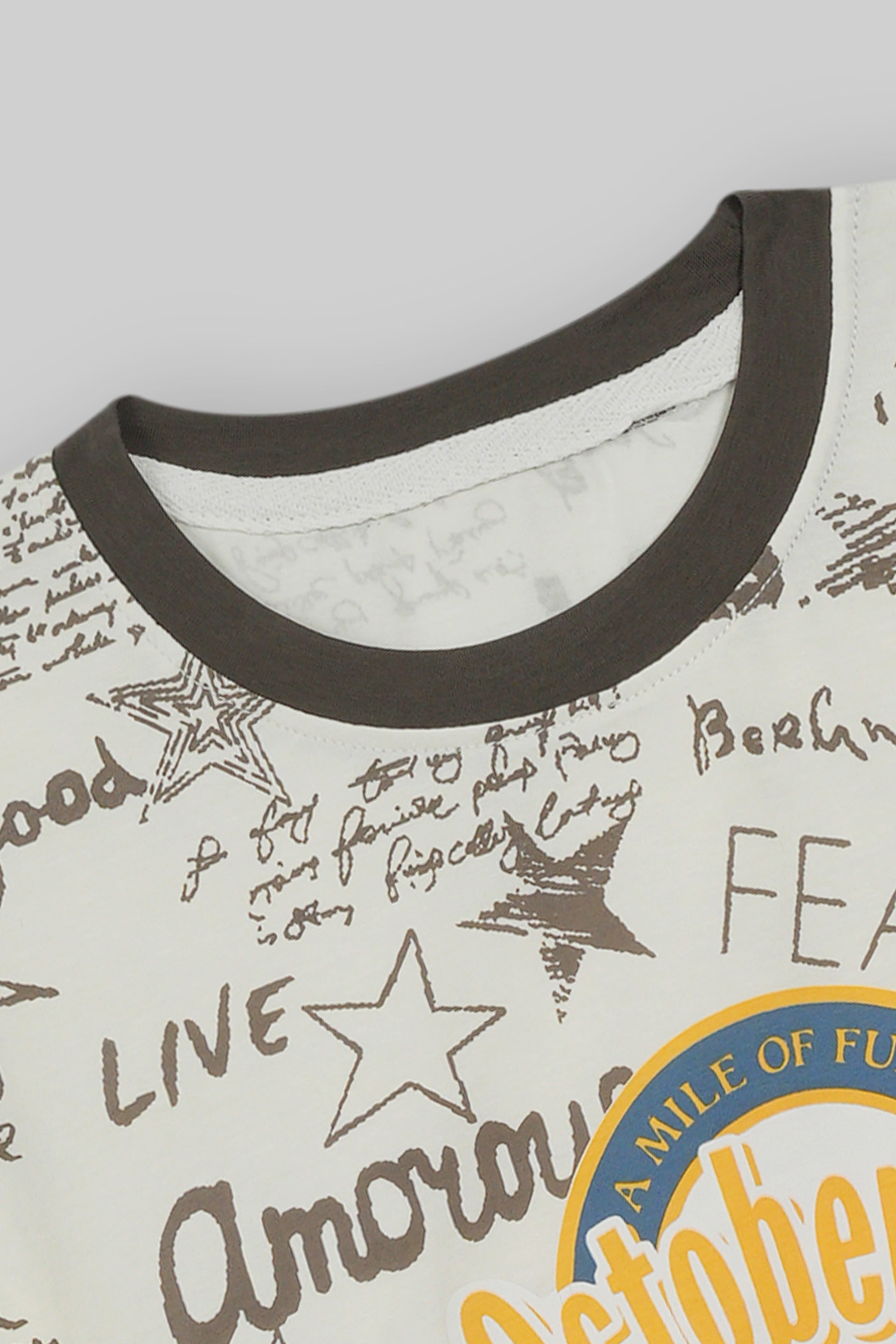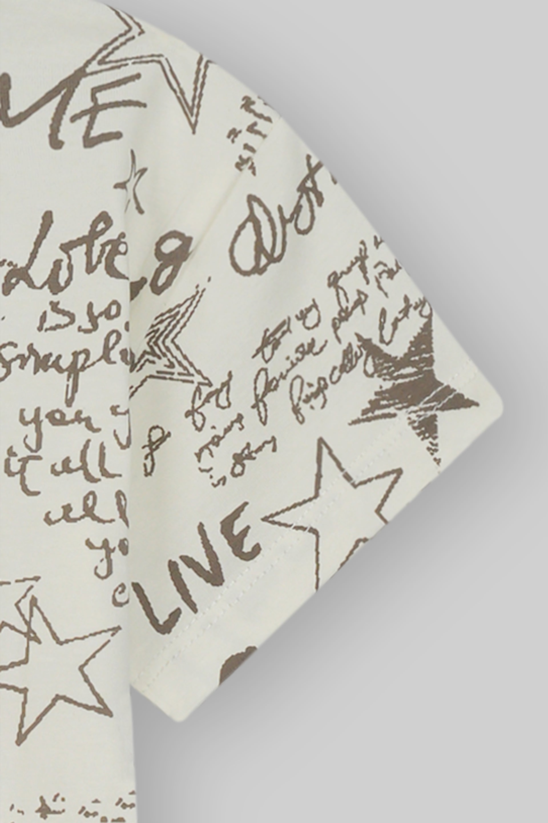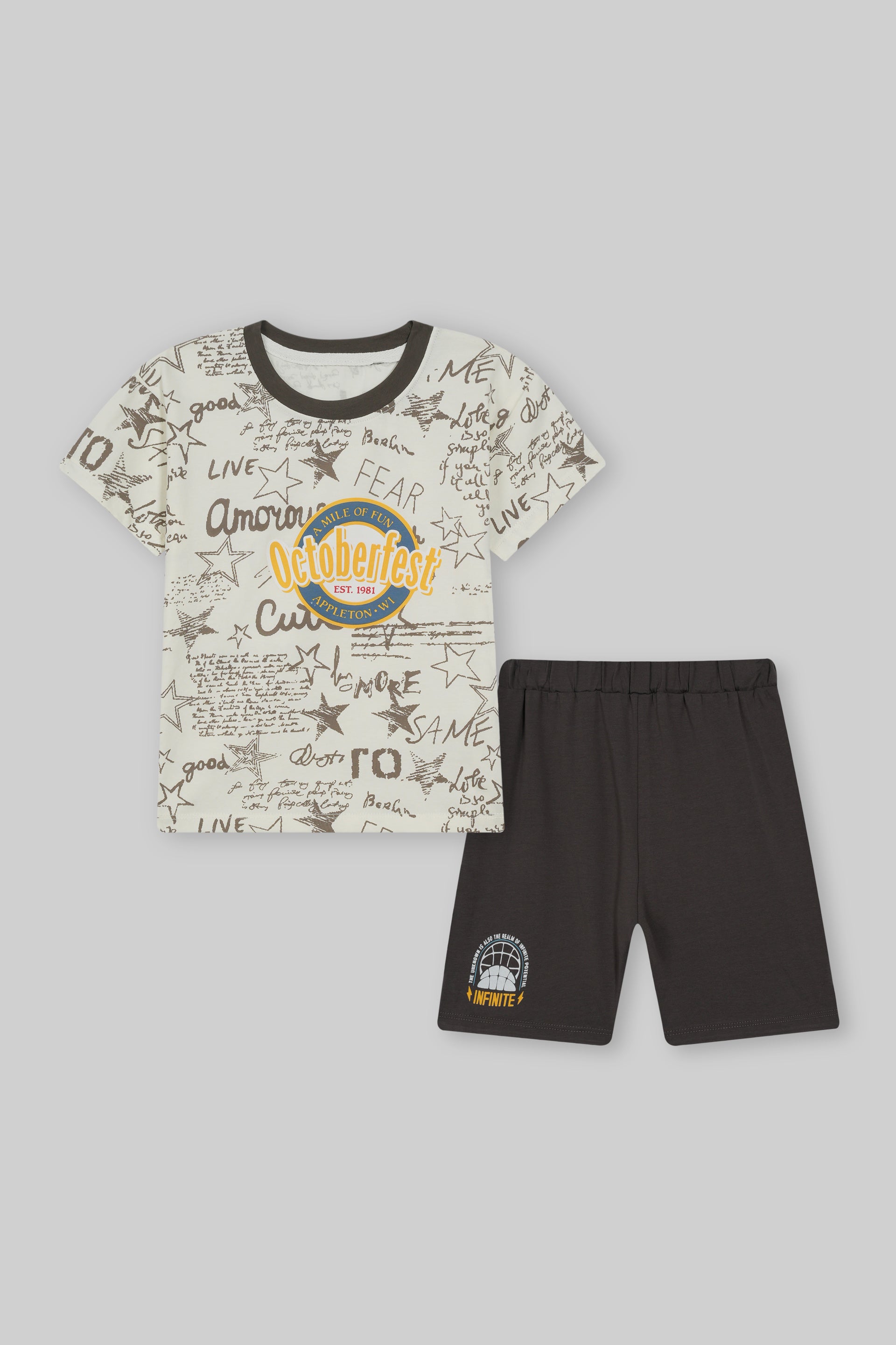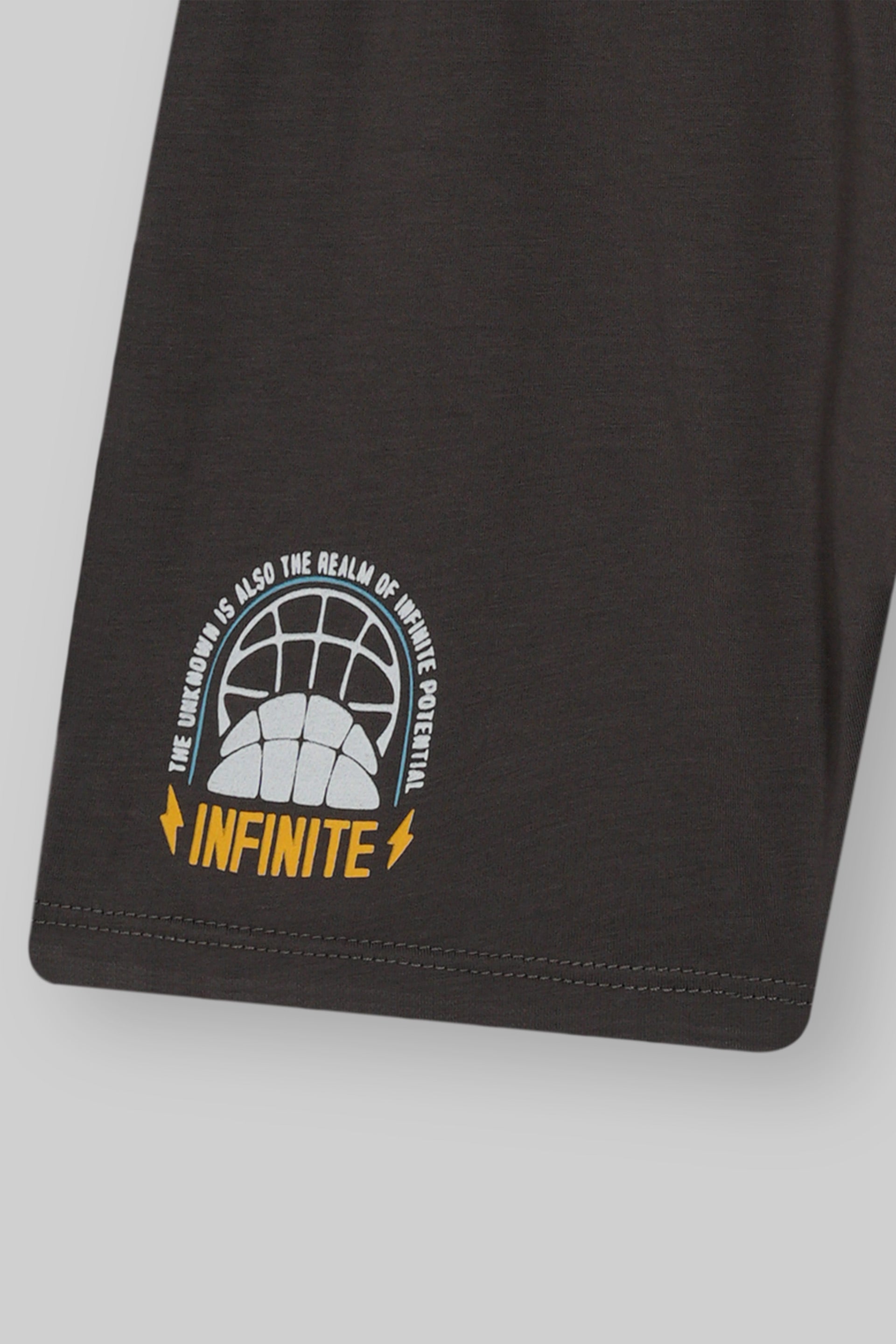 BROWN GRAPHIC TEE WITH COTTON SHORTS